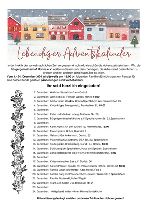 Lebendiger Adventskalender: ein voller Erfolg bei den Terminanfragen!