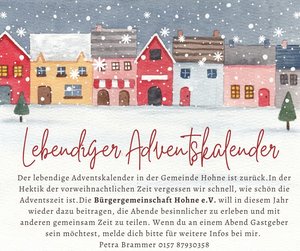 | BürgergemeinschaftLebendiger Adventskalender Terminvergabe wurde gestartet!